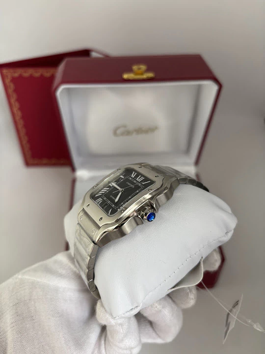 Apresentamos o sofisticado Relógio Masculino Cartier Santos , um ícone da alta relojoaria que une tradição e modernidade. Criado em 1904 para o aviador Santos Dumont, Com caixa de 40mm em acabamento prata, este relógio automático é ideal para homens que valorizam estilo e precisão.